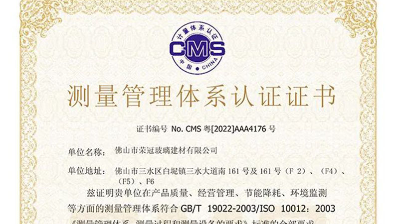 喜報(bào)!榮冠公司獲得AAA級(jí)“測(cè)量管理體系認(rèn)證”證書...
